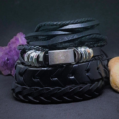 Esta pulsera artesanal destaca por su diseño rústico y versátil, fabricada con materiales como cuero, símil cuero, nylon y aleación de metales. Cada pieza es única, perfecta para quienes buscan un accesorio exclusivo que marque la diferencia en su look.